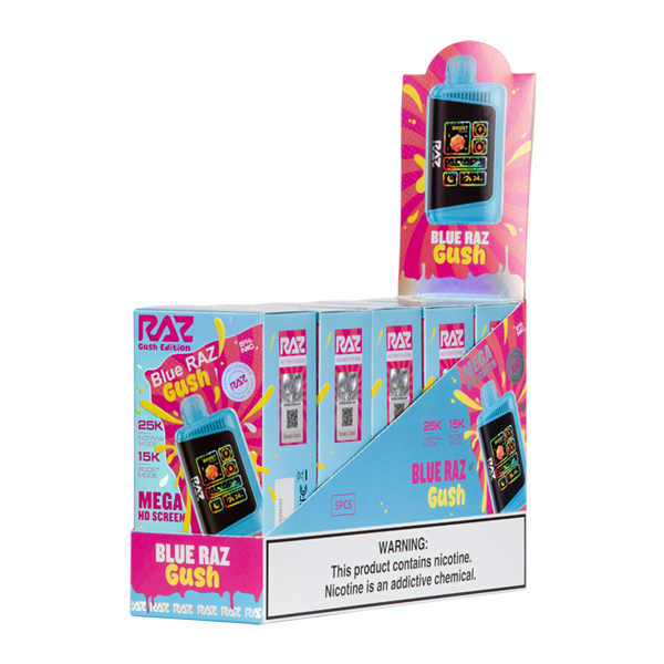 - Flavor: Gush Edition RAZ Vapes unleash juicy candied notes in a gusher of tart and sweet fruity flavor. The Blue RAZ Gush RAZ LTX 25000 is a perfect all-day vape.